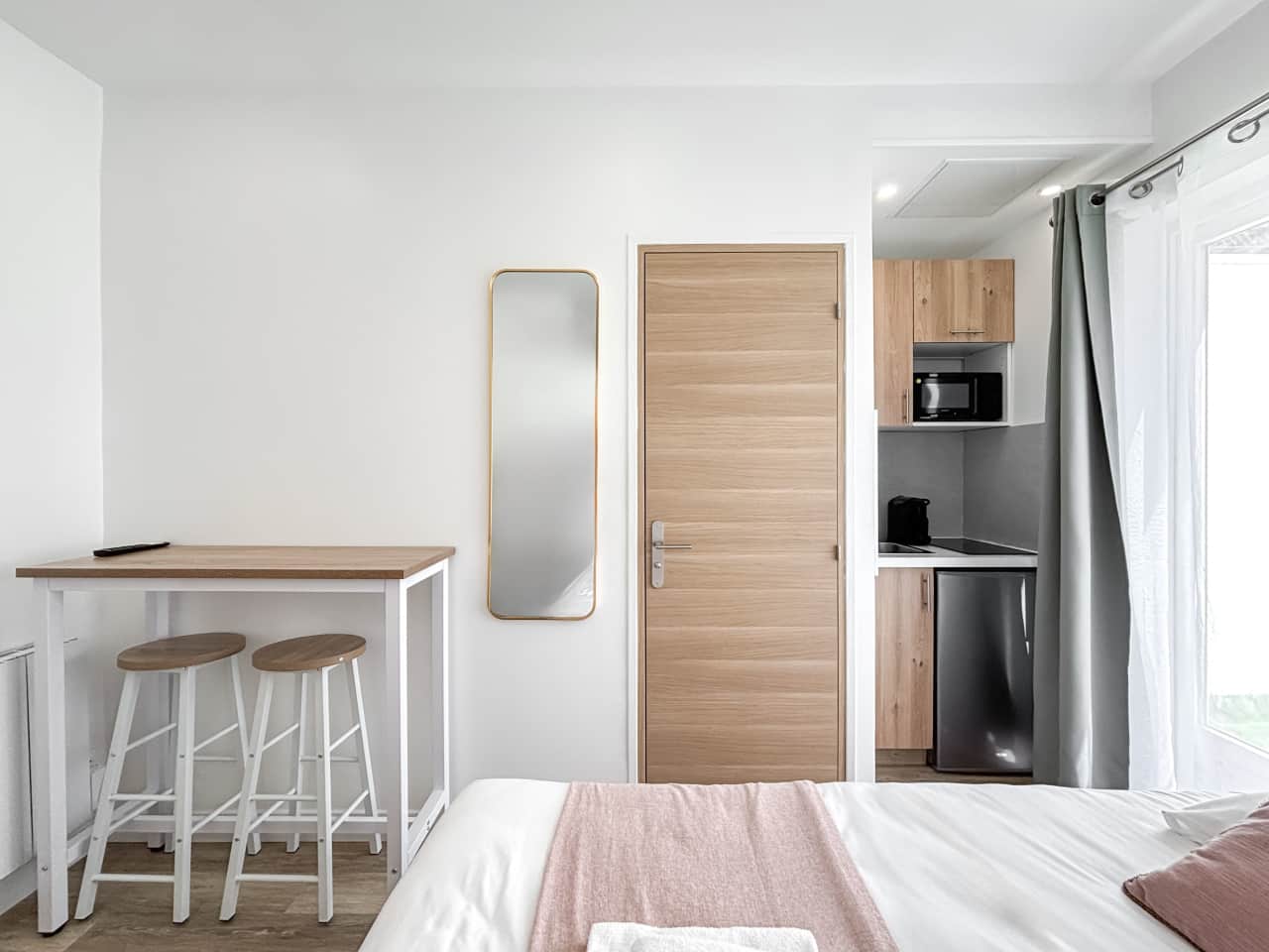 - Living & Sleeping Area: Cozy and thoughtfully furnished, the studio features a comfortable double bed and stylish decor, creating a peaceful space to relax after a day exploring the city.